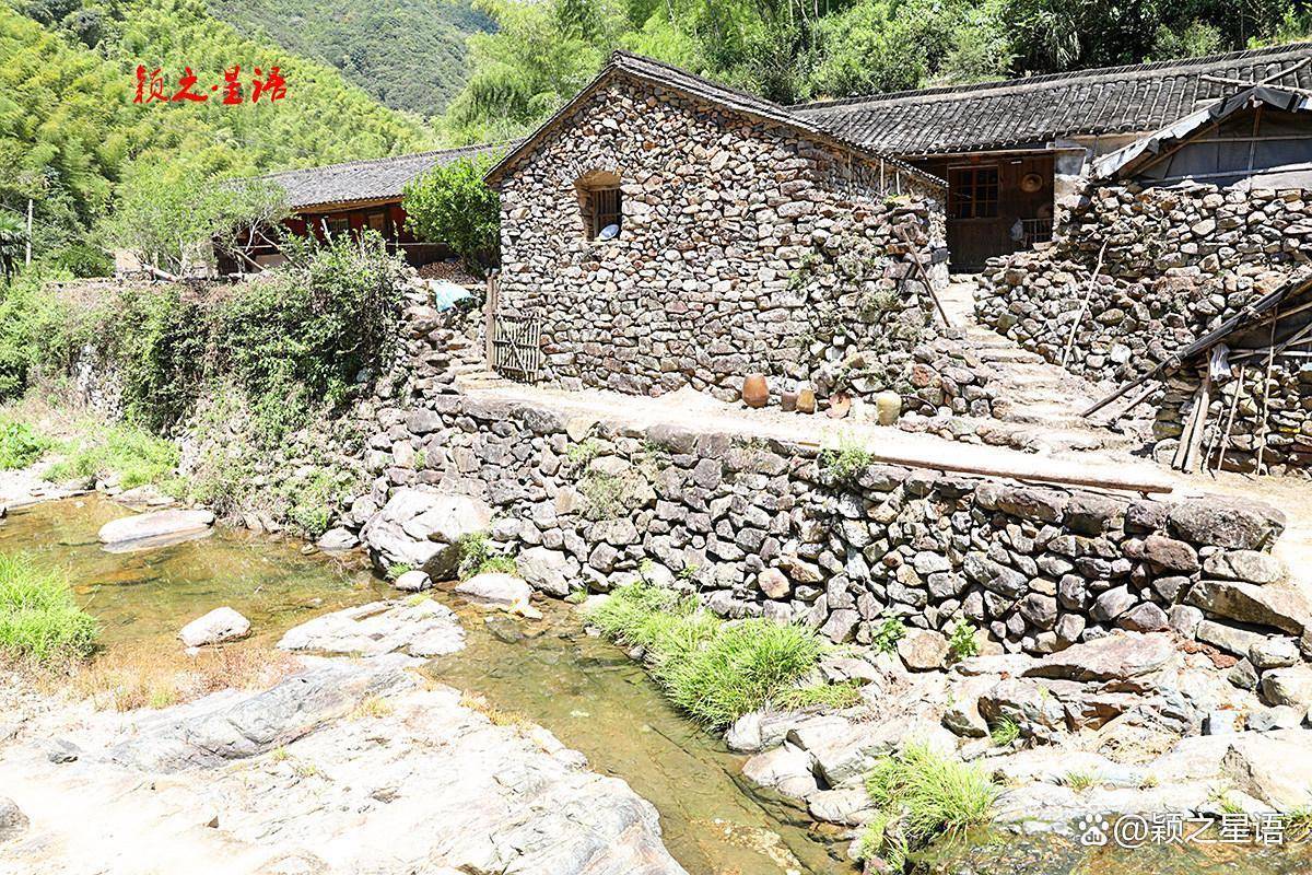 继续徒步前行,隐秘的山岙中还有人家,小地名叫落塘,成排的石墙房屋,原始而沧桑,恍若时空倒流。