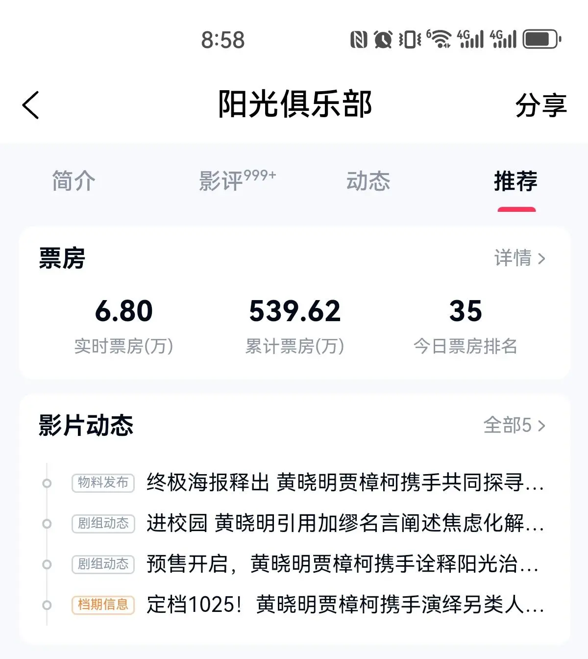 让所有人没想到的是,《阳光俱乐部》于10月25日上映,要知道黄晓明是“影帝”,已经两次获得金鸡奖,并且他还凭借《阳光俱乐部》,获得金爵奖最佳男演员奖,可是电影已经上映8天,票房才达到539.62万,这样的成绩,对于黄晓明来说是非常不理想的。