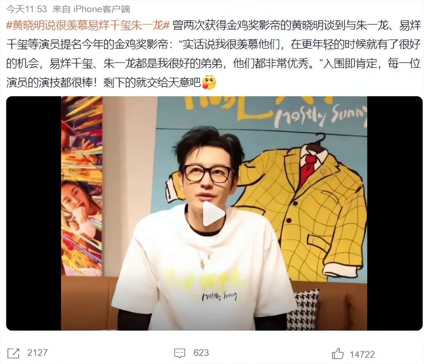 前不久,黄晓明接受采访,谈到朱一龙、易烊千玺等演员提名金鸡奖最佳男主,他表示:自己很羡慕,在更年轻的时候,就获得很好的机会,不得不说,《阳光俱乐部》和《小小的我》都是一部正能量的片子,会给有需要的人带来正能量,可是这类型的片子,在观看的时候,会让观众们感到难受,甚至代入角色本身。